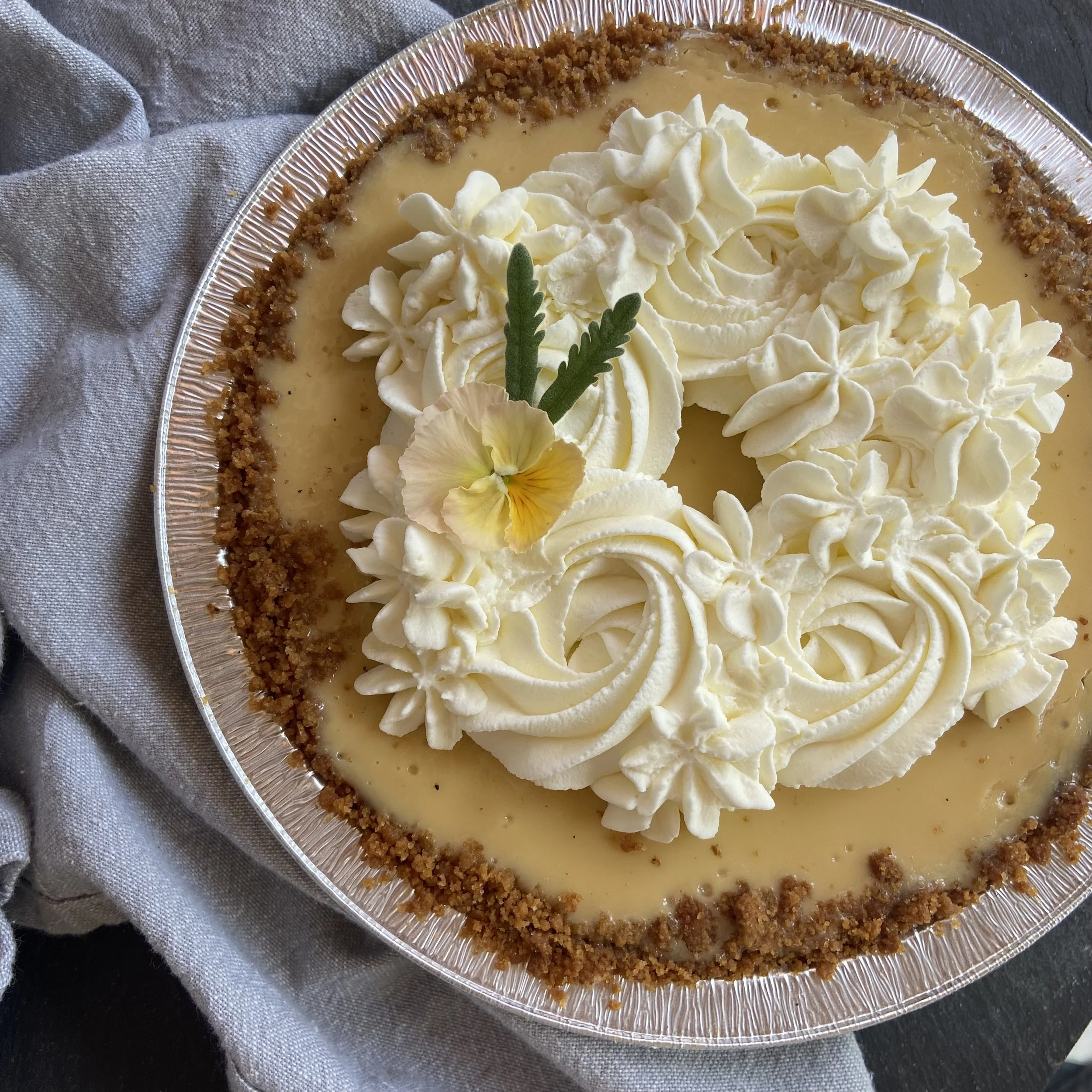 Our own graham cracker crust and tangy sweet key lime filling, topped with a crown of freshly-whipped cream. Serves 8-10.